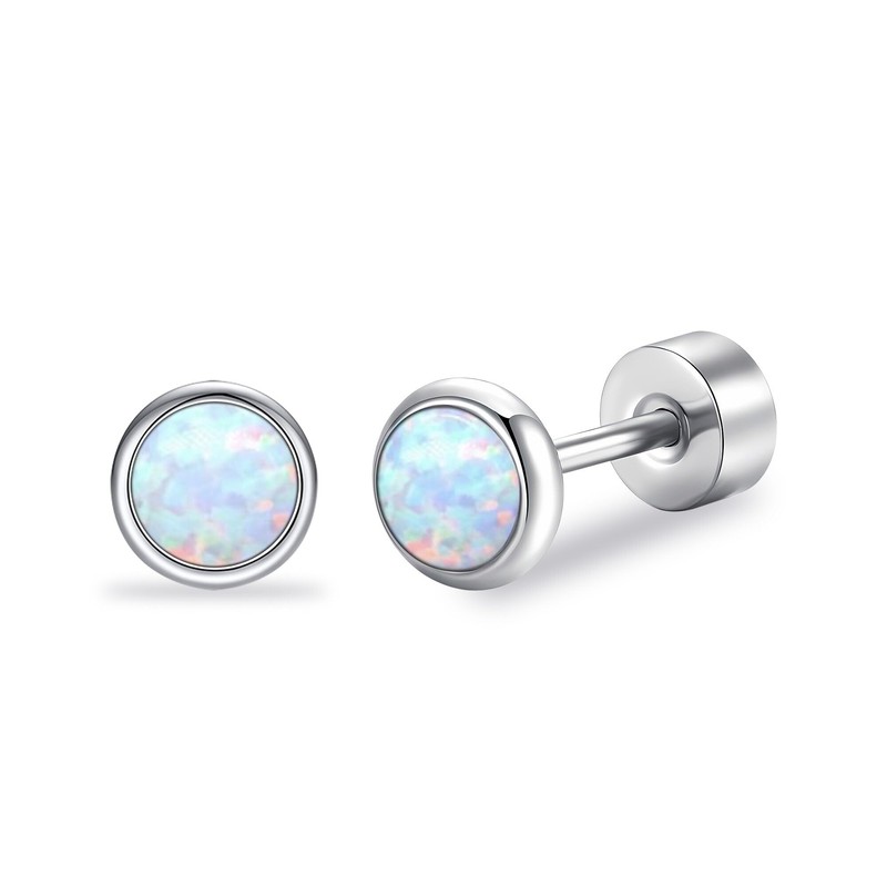 Women Flat Back Earrings, Titanium Earring Studs for Sensitive Ears, Hypoallergenic Opal Studs Earings for Multiple Piercings, Men Flatback Earrings Nickel Free(Opal- Fire and Snow-17, 4MM)