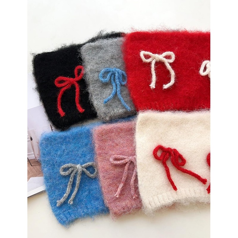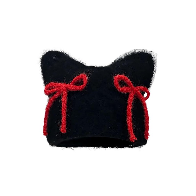 Women Fluffy Knit Beanie Hats Cute Bow Knot Cat Ear Hat Y2k Aesthetic Accessories Kawaii Stuff (Black,One Size)