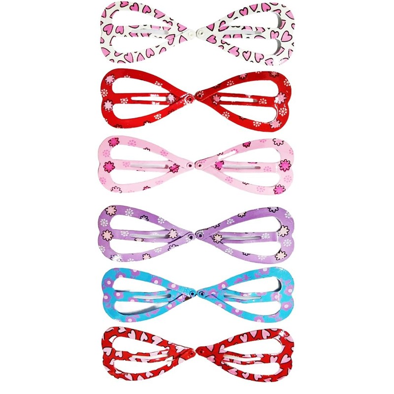 Women Girls Metal Printed Design Heart Shape Hair Tik Tak Pins Hairpins No-Slip Hair Accessories Multicolor