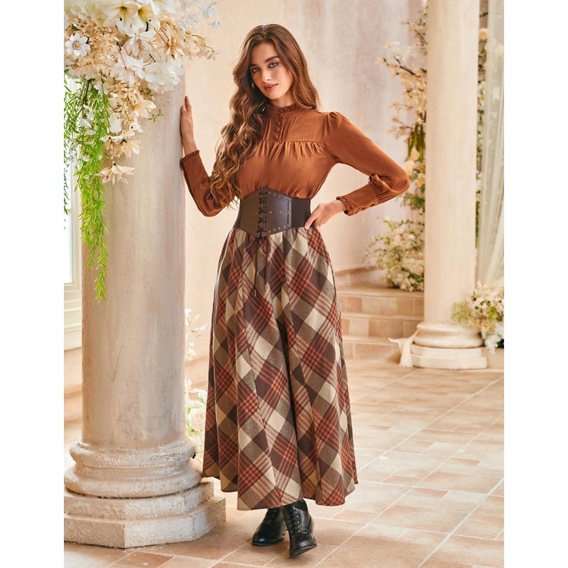 - MATCH - The high-waisted design of the maxi plaid skirt elongates the legs and pairs effortlessly with corsets, sweaters, or blouses
