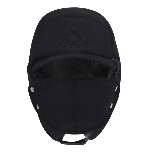Women Men Ear Flaps Hat Aviator Winter Warm Trapper Hat Snow Ski Cycling Caps, Black1, XX-Large-3X-Large