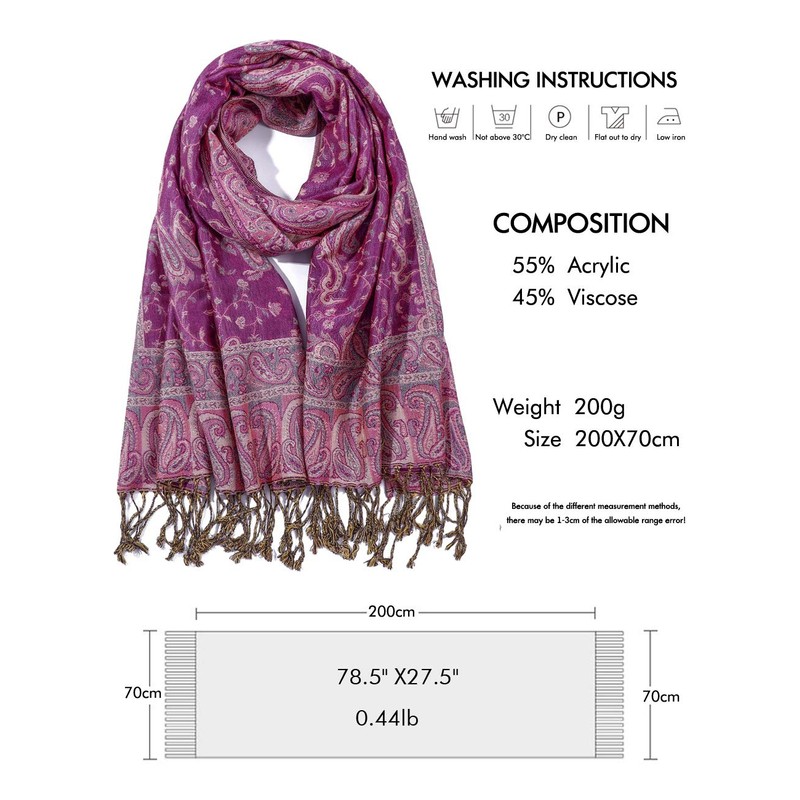 Women Pashmina Scarves Luxury Winter Scarf Paisley Shawl with Fringe Reversible Large Blanket Wrap 78.5" X27.5"(Red Purple)