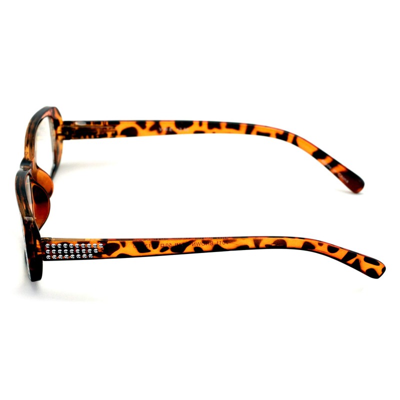 - Rectangular shape reading glasses accented with beautiful rhinestones. Leopard fashion readers with spring hinge temple for comfort.