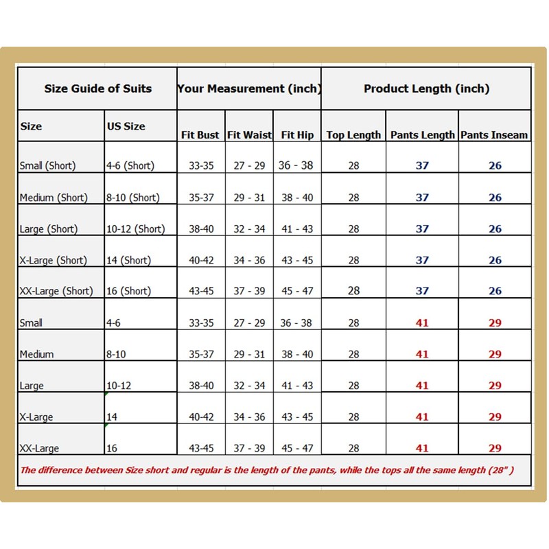 - The difference between Size short and regular is the length of the pants, while the tops all the same length (28" )