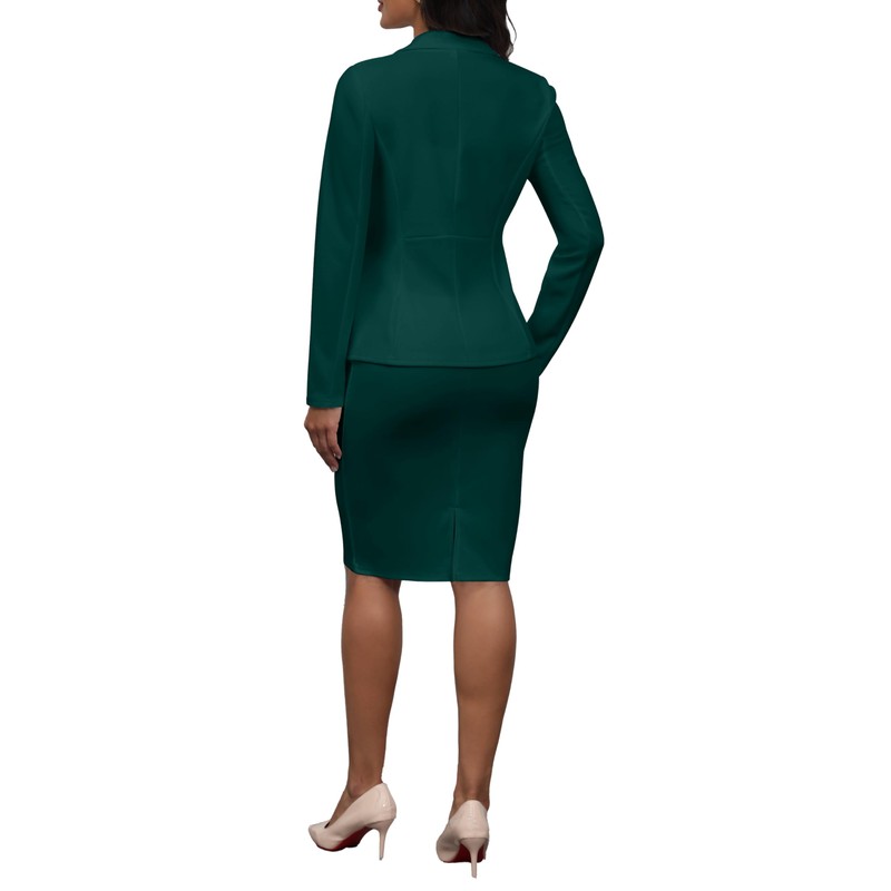Women's 2 Piece Suit Skirt Set Business Casual Long Sleeve Blazer and Pencil Skirt Sets Green L