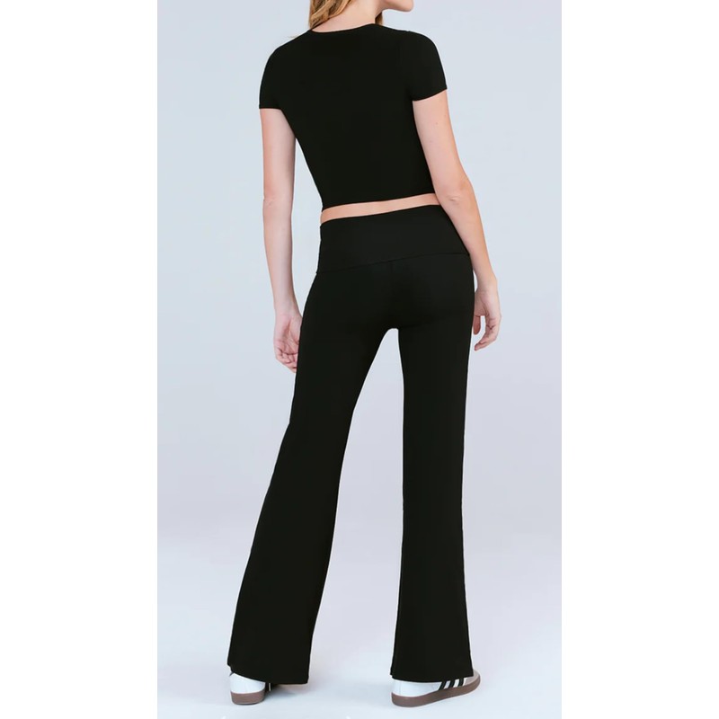 - Elegant and Versatile Style: Designed with a sleek, slim-fit short sleeve top and trendy low-rise flare leggings, this set is perfect for yoga sessions, casual outings, or even social gatherings, offering a chic look in any setting.