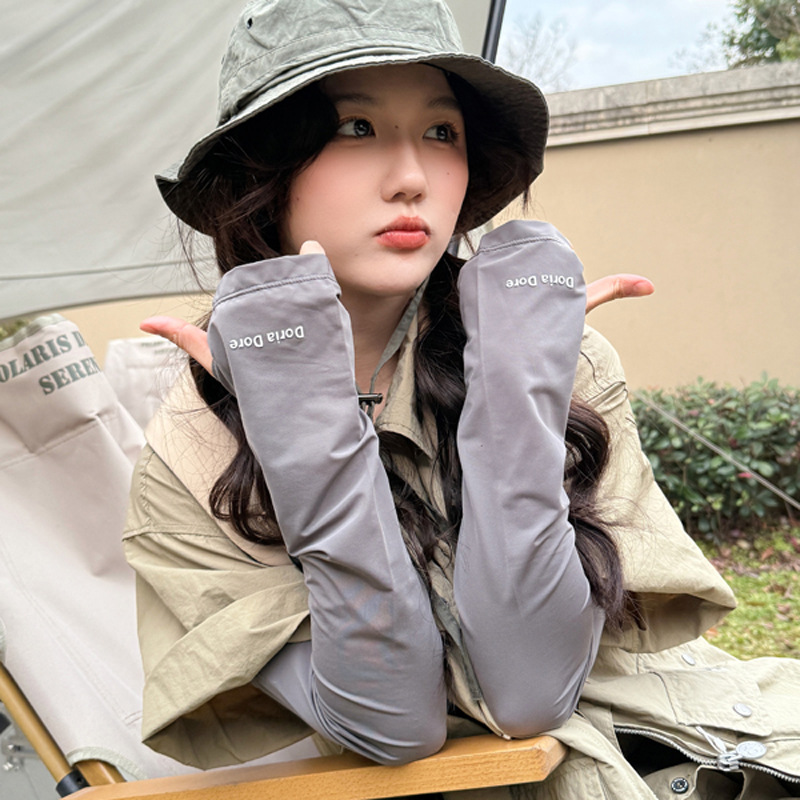 Women's 2025 New Summer Ice Silk Thin UV Protection Sleeves Size/Light Gray 5ea