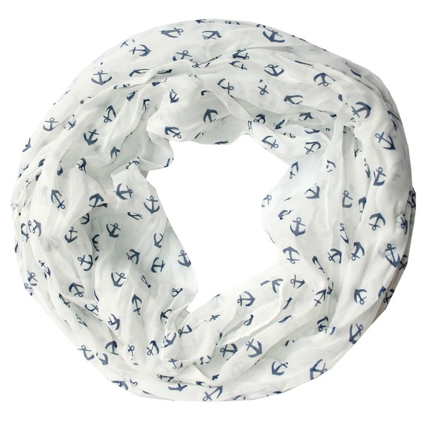 Women's Anchor Navy Silk Loop Scarf. - 150 x 45 cm