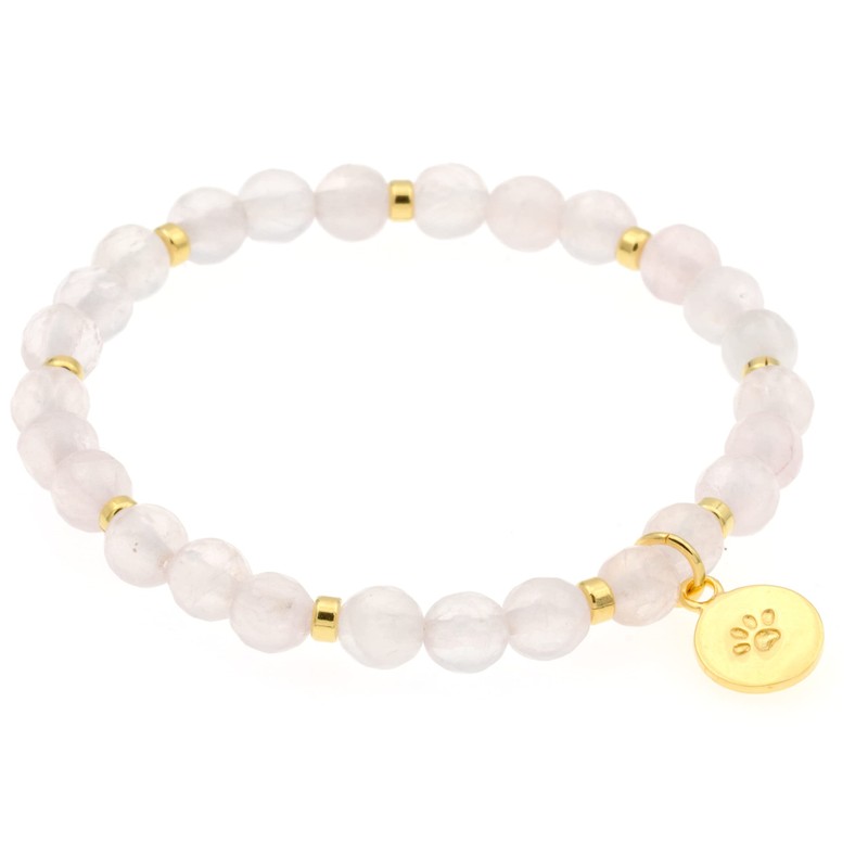 Women's Bracelet Made of Real Rose Quartz, Dog Paw Pendant 925 Silver or Gold Plated Beautiful Gift for Dog Lovers (Quartz)