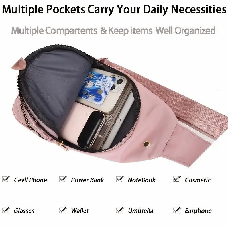 【Spacious and Organized】 This women's crossbody bag features multiple compartments to keep your belongings neatly organized. The main compartment is ideal for larger items like a travel wallet or small sling bag, while the smaller pockets are perfect for storing essentials like sunglasses or credit cards.