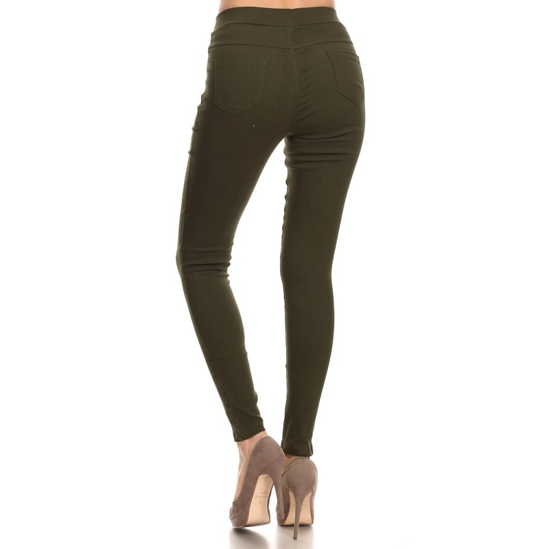 Women's Cotton Blend Stretch Skinny Pull On Pants Jeggings (Olive Green Size L)