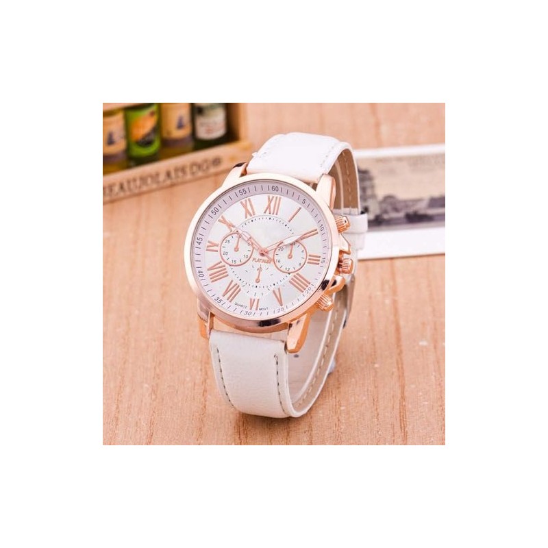 Women's Diamond Crystal Rhinestone Leather Quartz Wrist Watch (A White)