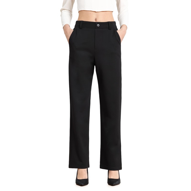 With two side slash pockets, these **black work pants for women** are designed to keep your essentials—like phone, cards, and keys—within reach. The straight-leg design offers a flattering silhouette, while the functional pockets add a touch of practicality without sacrificing style.