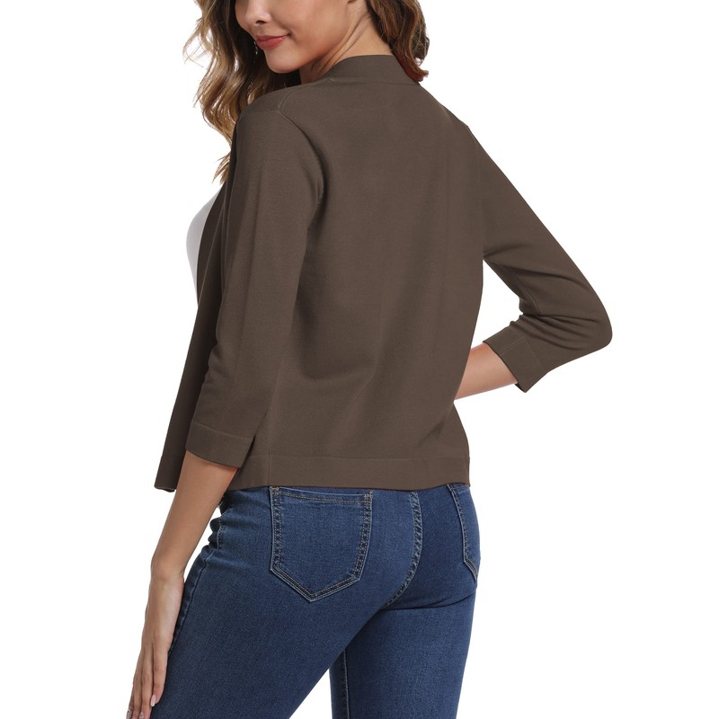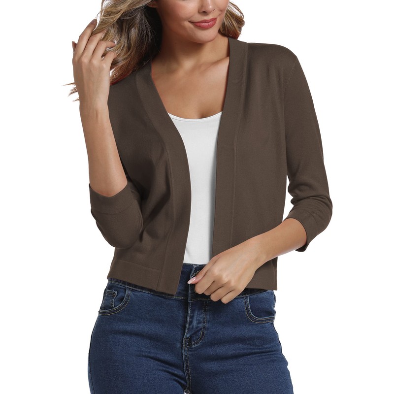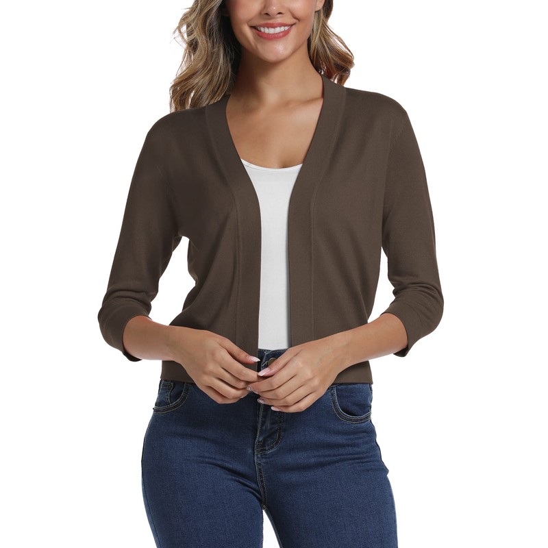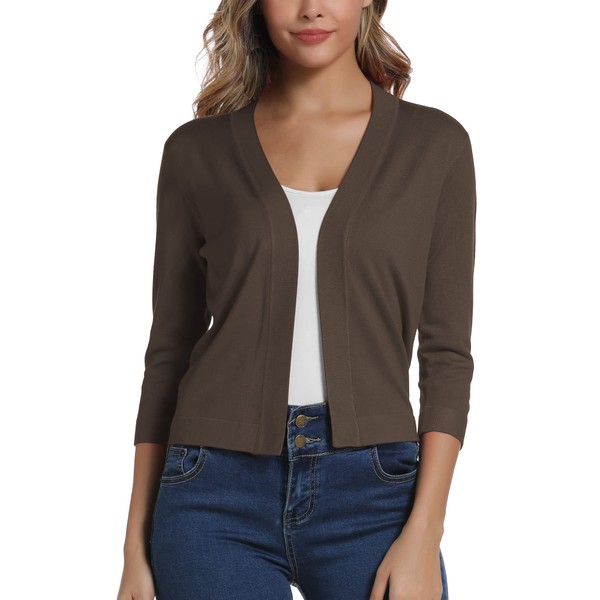 Women's Elegant 3/4 Sleeve Open Front Sweater Solid Cropped Shrug Cardigan (XL, Brown)
