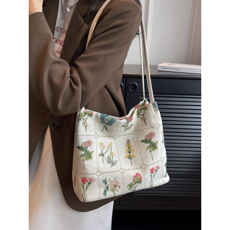 „ÄêFloral Embroidery„Äë: Featuring random floral embroidery, this tote bag adds a unique touch of nature-inspired aesthetics to your accessory collection.