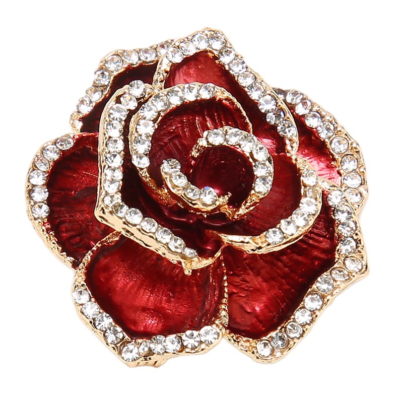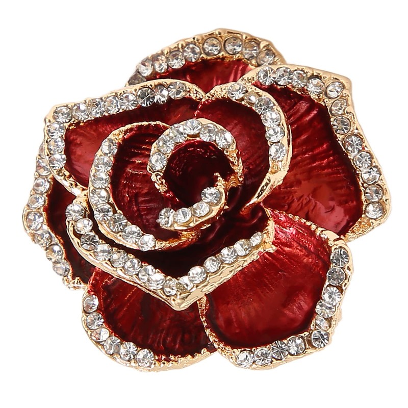 - Elegant and Sparkling Design: This red brooch features a beautiful rose brooch shape with intricate rhinestone details that provide a brilliant sparkle. The burgundy color and radiant stones create a luxurious look, making it an eye-catching accessory. Whether at a party or wedding, this flower brooch pin is designed to enhance your style and ensure you stand out with a touch of vintage elegance.