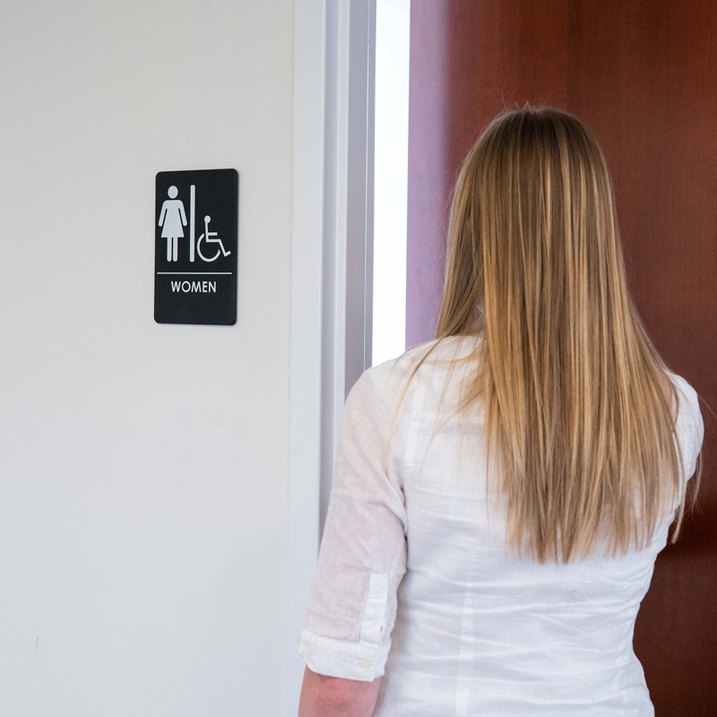 - WOMEN’S BATHROOM SIGNS: Exactly what you need in your small office or business building bathrooms; Using these plastic restroom signs will help all of your guests, patrons, and employees find the bathrooms in your space; Eliminate all confusion and mark clearly where the facilities are with bathroom signage