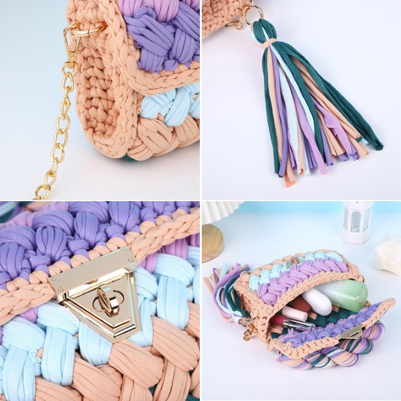- Handmade Crochet Design: Exquisite hand woven texture, colorful contrasting color design, hardware chains and twist locks decoration, three-dimensional and full