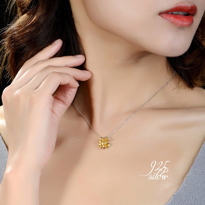 Women's Heart 925 Sterling Silver Pendant Birthstone Jewellery 40-45 cm Adjustable Chain Necklace Women's Chain Lucky Charm Lucky Clover Gifts for Party/Anniversary/Birthday, Sterling Silver, Citrine