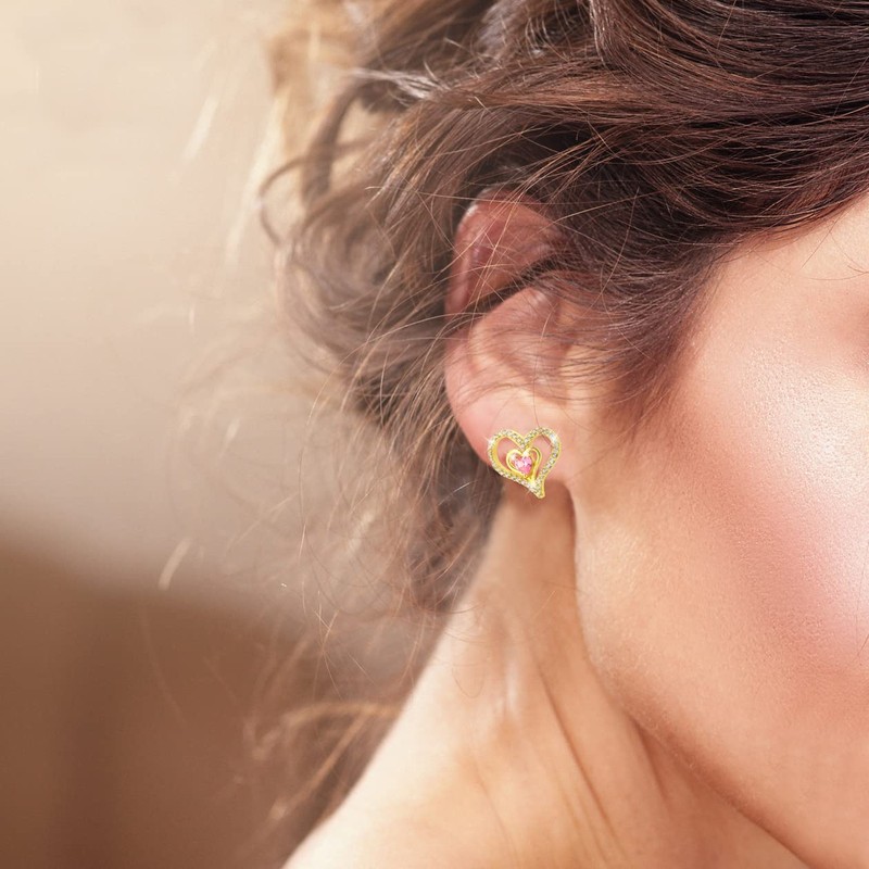 Women's Heart Stud Earrings Set Lovely Pink Earrings 18 Carat Gold Plated with Pink Zirconia Stones in AAA Quality, Jewellery Box and Certificate of Authenticity, Silver, Cubic Zirconia