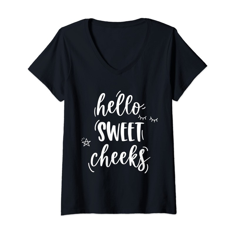 Women's Hello Sweet Cheeks V-Neck T-Shirt, black