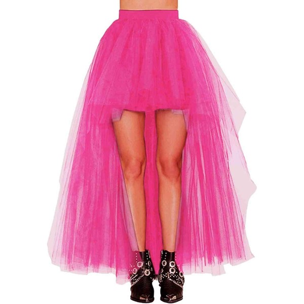Women's Hi-Lo Tutu Tulle Bustle Skirt Petticoat Festival Party Maxi Skirt Wedding Evening Prom Dovetail Skirt, Hot Pink, Medium
