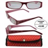 Women's High-Powered Reading Glasses: Red and Pink Frame and Matching Case +5.00 Magnification Aspheric Lenses