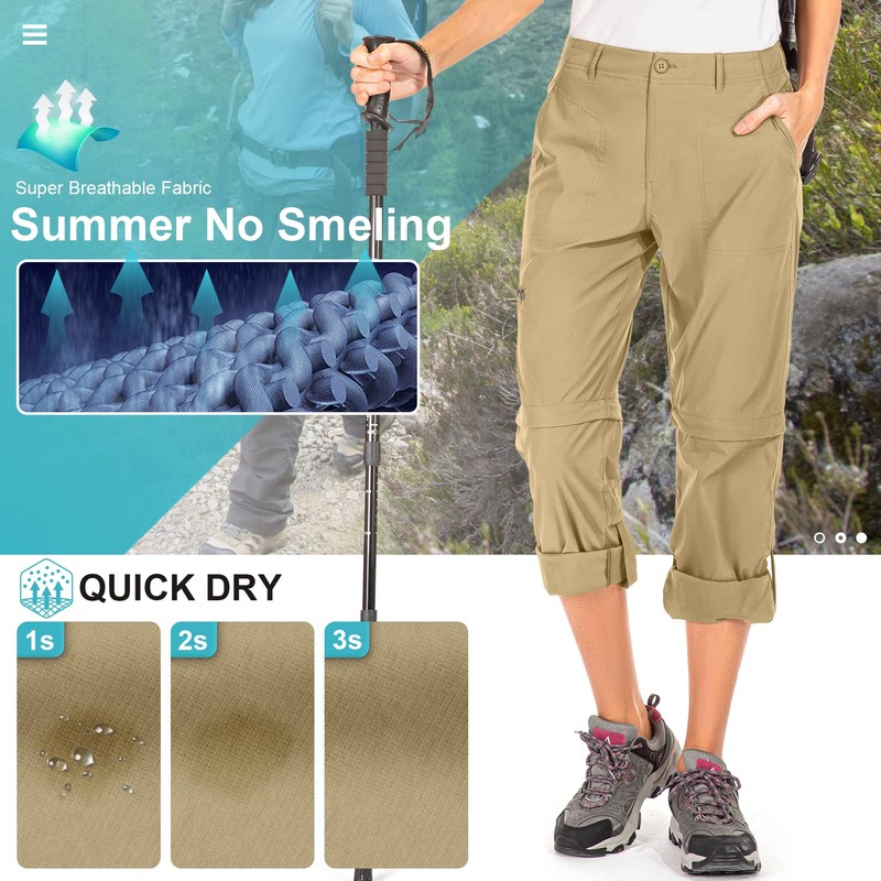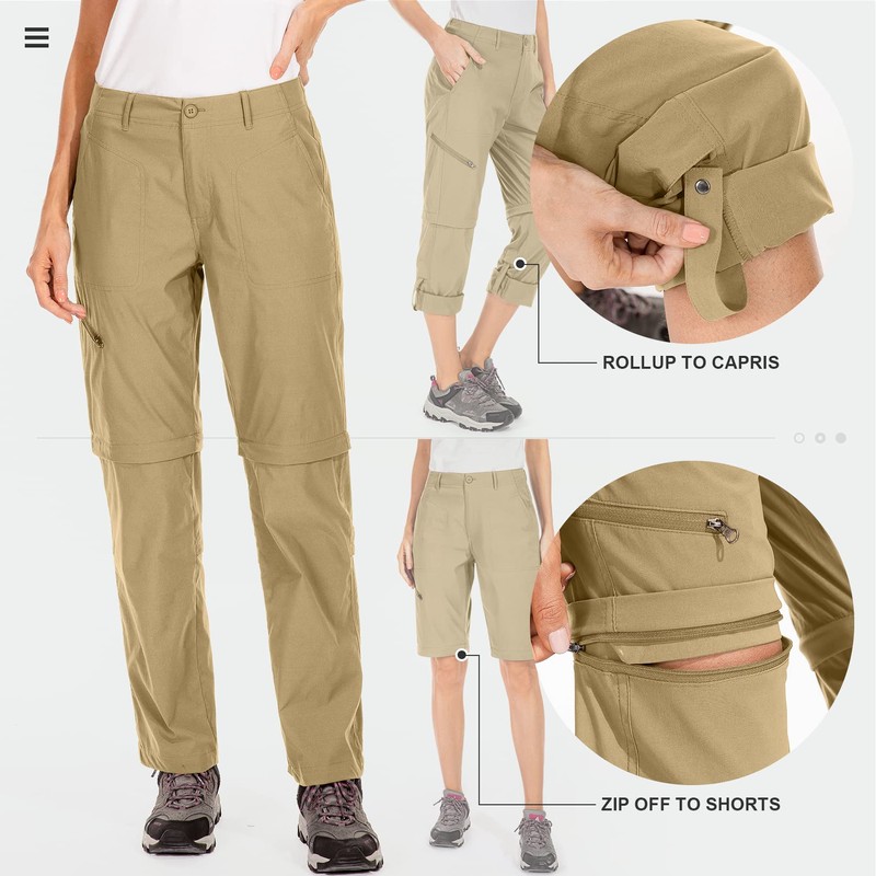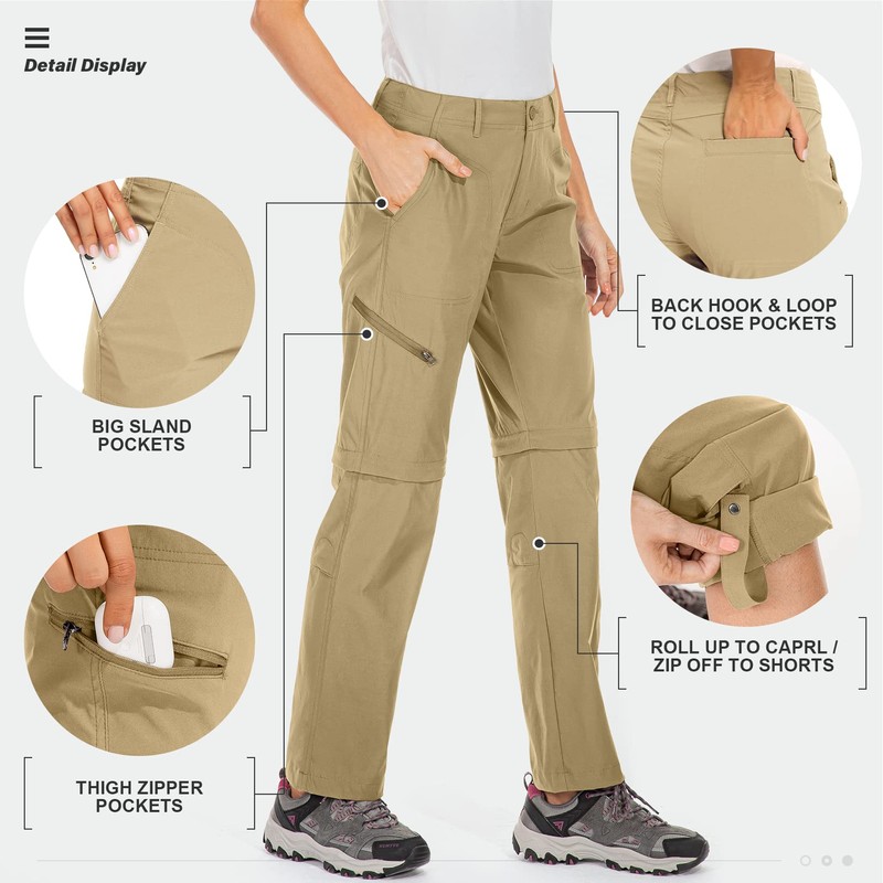 Women's Hiking Convertible Pants Zip Off Capri Lightweight Quick Dry Shorts Outdoor Fishing Safari Waterproof Travel Camping Stretch Pants,2192,Khaki,28/US 6