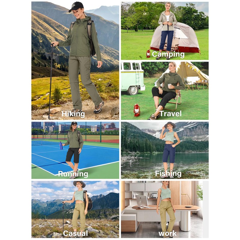 - Convertible hiking pants women: Zip-off legs make for an easy change from pants to shorts, The capri features Roll up around the knee parts to keep cooling when hiking and make the pants hem freely .suitable in the hot and cool seasons of spring summer and autumn.2-in-1 pants can reduce your travel weight. especially suitable for the Summer spring and autumn seasons.