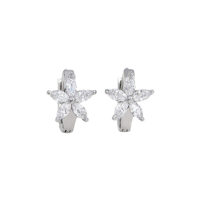 Women's Hoop Earrings Flower 925 Sterling Silver Rhodium-Plated 5 Zirconia Earrings Hoop Earrings Flower, Sterling Silver
