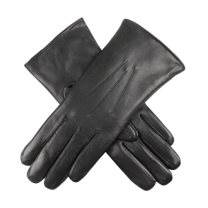 Women's Kangaroo Leather Dress Gloves Cashmere Wool Lined - Black - Large