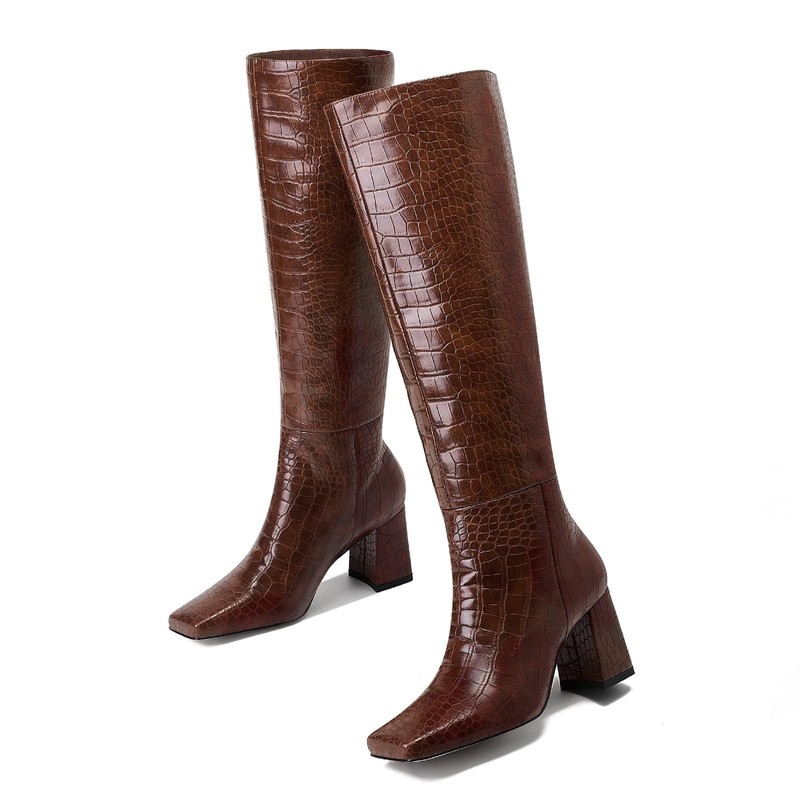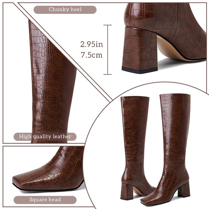 • [Stylish Square Toe Design]: Elevate your footwear collection with our Women’s Knee High Boots, crafted from premium PU faux crocodile leather. Featuring a chic square toe and a soft, comfortable lining, these boots blend modern aesthetics with durability for all-day wear.