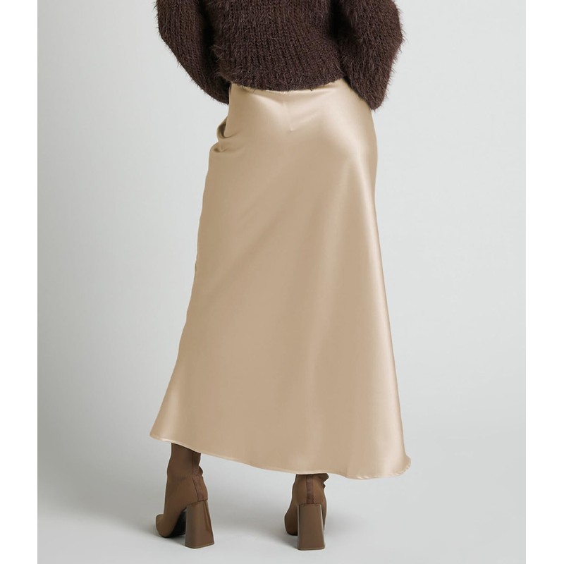 Women's Leopard Print Satin Maxi Skirt High Waisted Elastic Waistband Silk A-Line Casual Party 2025 Summer Long Skirts (Solid Champagne, Large)