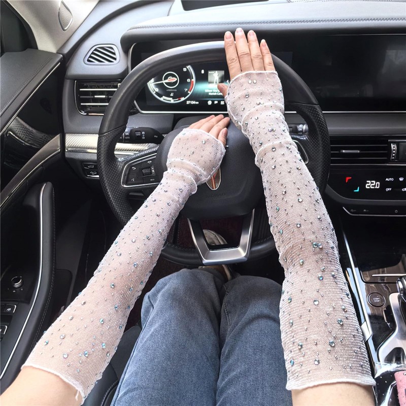 - The sheer gloves are made of mesh fabric which is smooth and stretchy, embellished with sparkly rhinestone, making fashion ladies look more attractive.