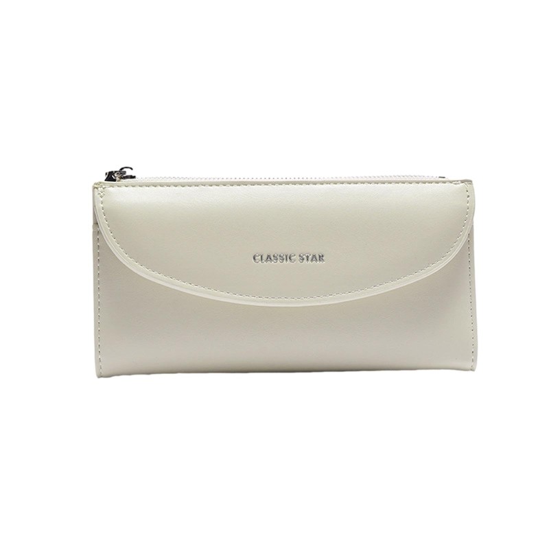 Women's Long Wallet, Thin, Slim, Compact, Cover, Thin, Zipper, Bill Compartment, white