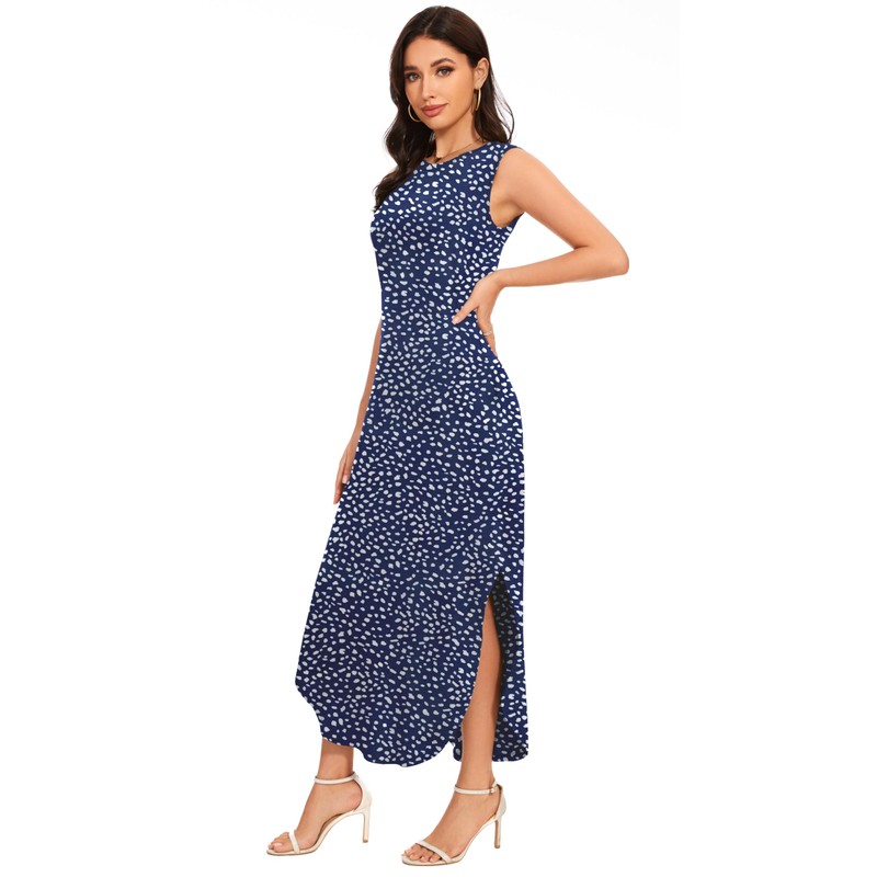 - STYLISH DETAILS - Sleeveless Maxi Dress For Women/Casual Elegant Dresses/Crewneck Dress/High Waist A-Line Dress/Women Swing Dress With Pockets/Knit Dress For Women/Party Dress For Women/Split Dress For Women/Fit Dress For Women/Beach Dress For Women/Women's Sleep Dress/Sundress With Pokets