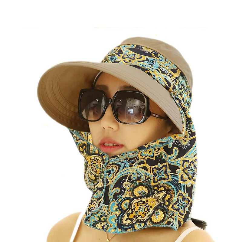 Women's Multifunctional UPF 50+ UV Sun Protection Waterproof Breathable Face Neck Flip Folding Sun Hat (hat-Khaki)