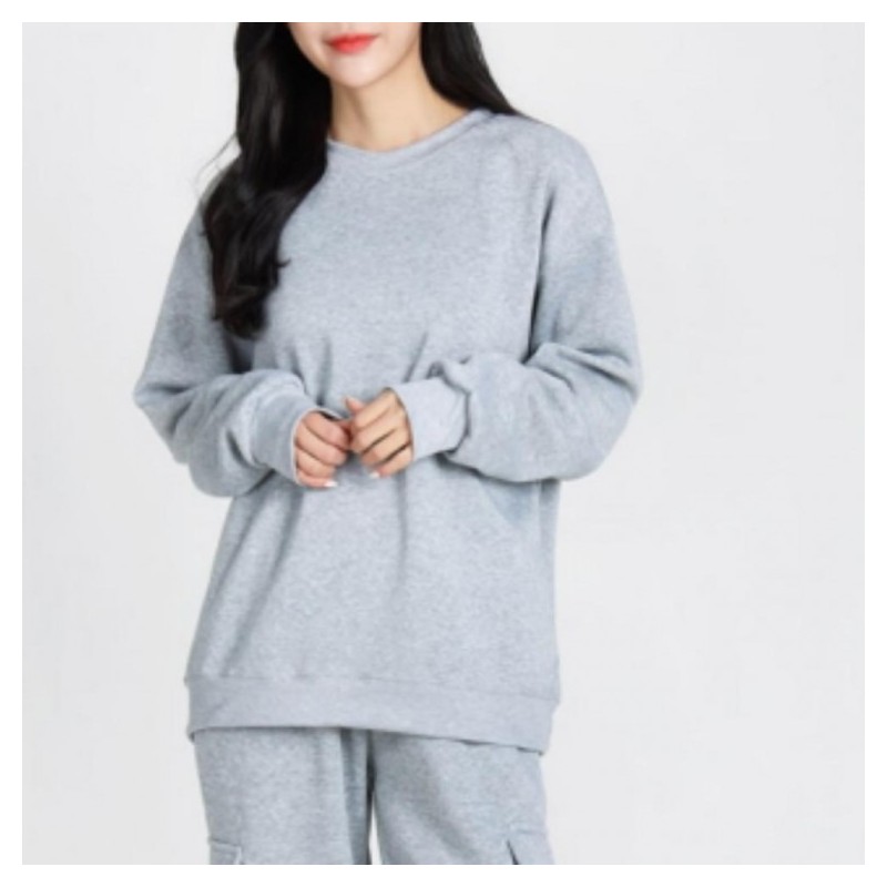 Women's Oversized Fleece-Lined Winter Sweatshirt Plain Gray F