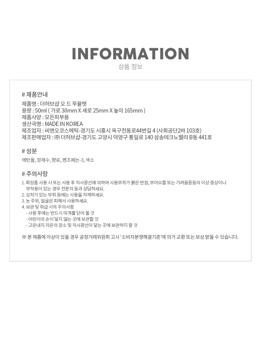 본 제품을 구매하시면 원활한 배송을 위해 꼭 필요한 고객님의 개인정보를 (성함, 주소, 전화번호 등) 택배사 및 제 3업체에서 이용하는 것에 동의하시는 것으로 간주됩니다.