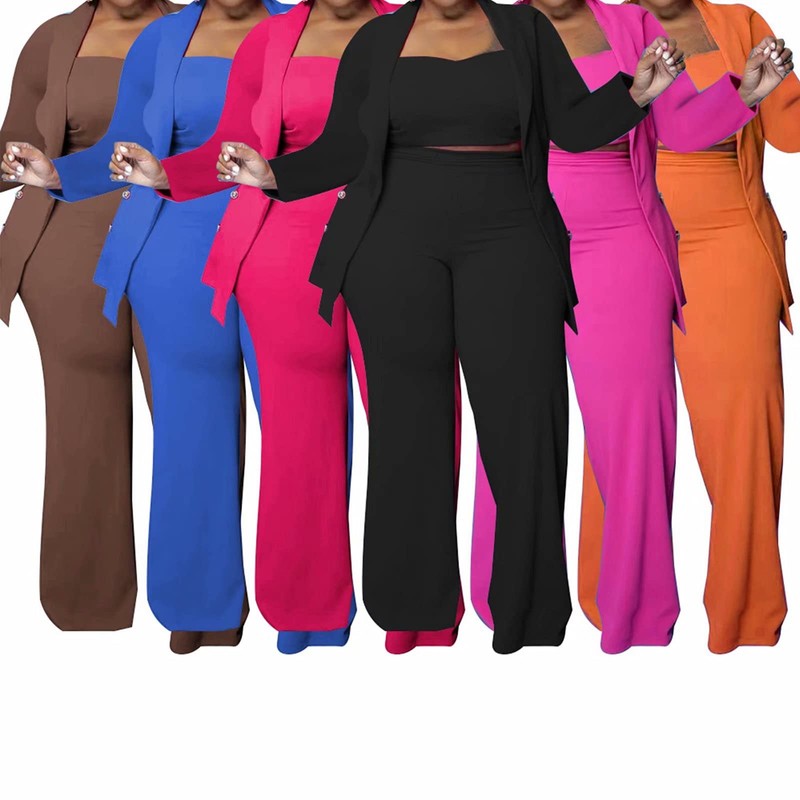 - It's an convenient outfit for any season.You can only wear crop top vest and wide leg pants alone when weather is hot,or you can wear the set together when weather is cool. So cozy and stretchy,it can fit any type women well.Easy to match any casual shoes.You can wear it at home/outgoing.Versatile women's suits 3 piece fashion suits with blazer for summer spring autumn winter