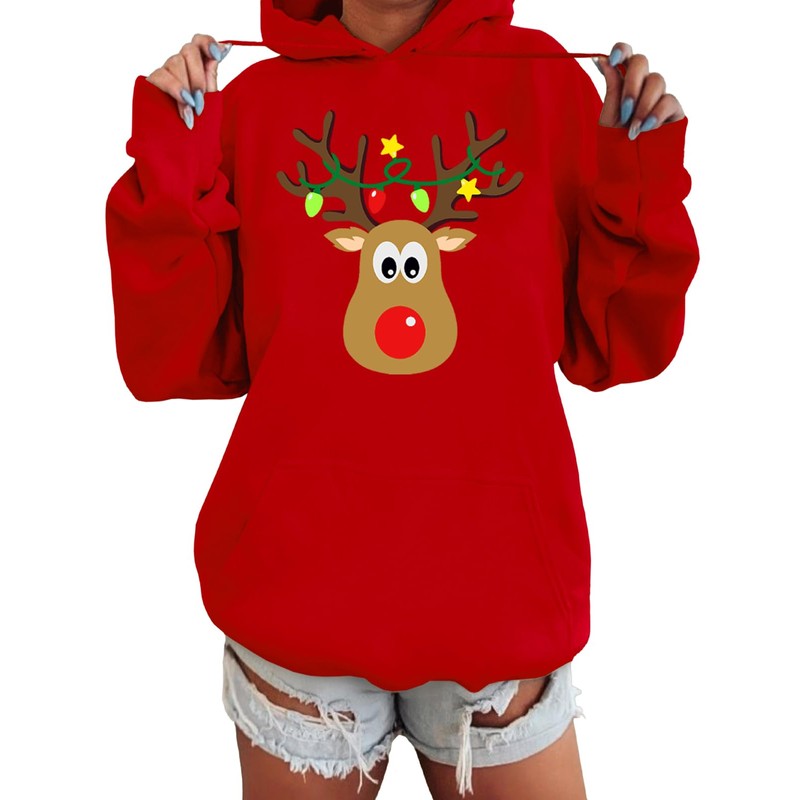 Women's Reindeer Sweatshirts Men Christmas Elk Costume Hoodies Long Sleeve Drawstring Fawn Pulloverr Tops M
