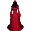 Women’s Retro Medieval Witch Dress Hooded Flare Sleeve Floor Victorian Gothic Dress Cosplay Halloween Costume Women(Red,M)