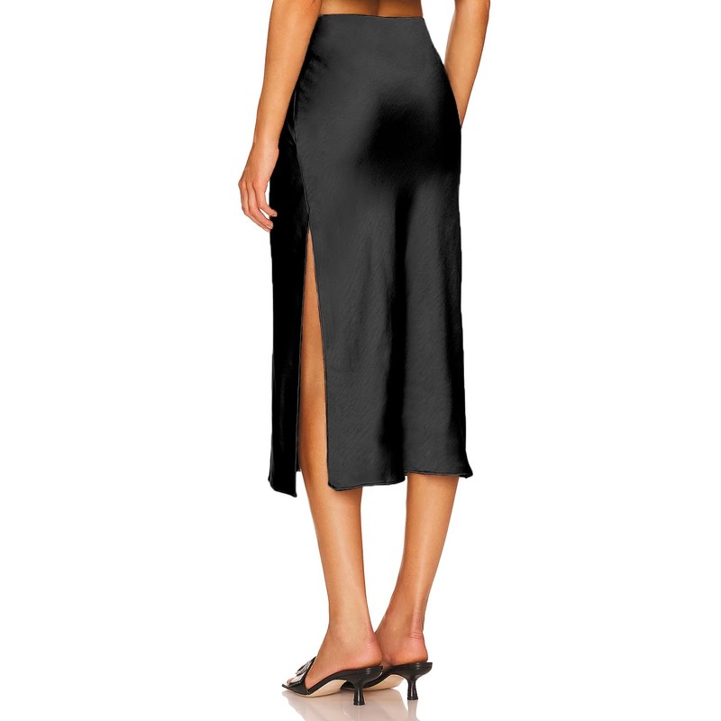 Women's Satin Skirt, Elastic Waistband, Long High Waist Skirt, Elegant Split Hem, Midi Skirt, Business Skirt, black