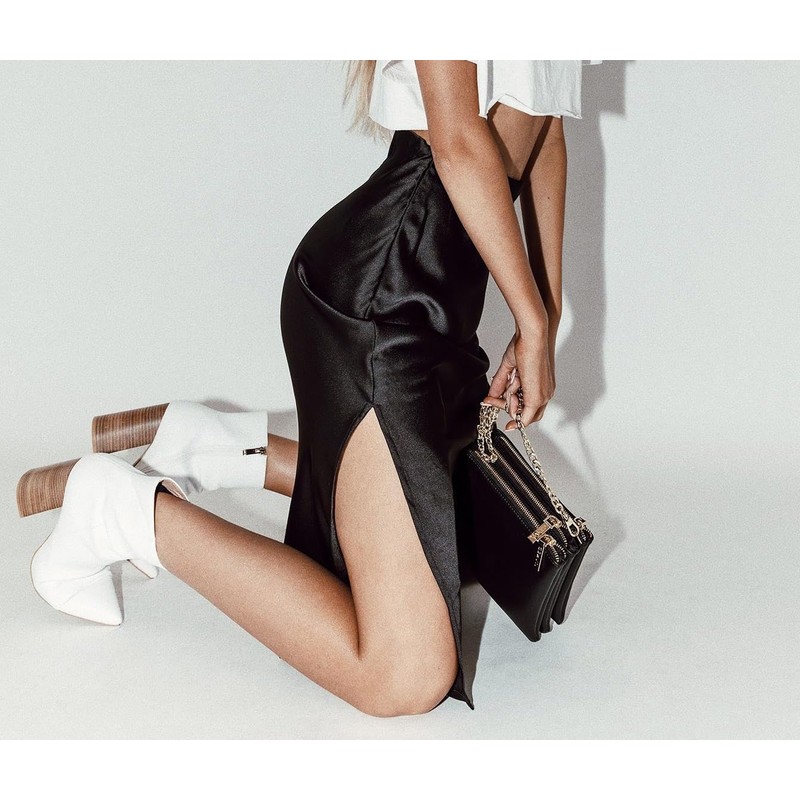 - ♥ Features: satin for women. High waist, side split hem, flared fishtail, plain, zip, A-This skirt shows a curvy figure and it is a trendy style, emphasises your curves and gives you an elegant look.