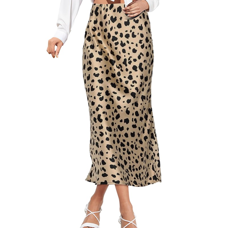 Women's Skirt, Midi Satin High Waist Skirt (US, Alpha, Medium, Regular, Regular, Standard, Leopard)