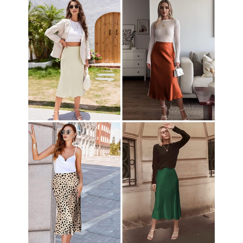 - Unique Aesthetic Design: The silk skirt has the design of high waist,which can highlight your figure more slimmer, create a flattering silhouette. The skirt is mid-length, reaching below the knees but above the ankles. It provides a balanced and stylish look that is neither too long nor too short. Slightly rectilinear shape complements all body types by providing a feminine silhouette.