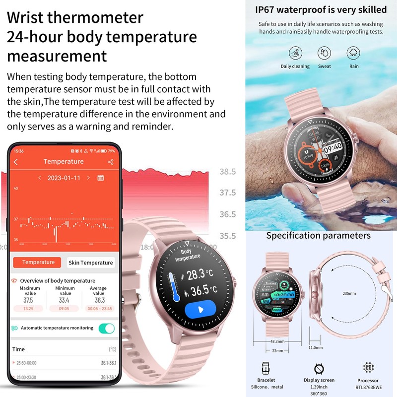 - Women's fitness watch for health monitoring: with a high-precision motion sensor, our smart watch detects your 24/7 heart rate, blood oxygen and analyses your sleep quality to help you make reasonable adjustments to your lifestyle. It has female menstrual cycle function that can help you predict menstrual time, safety period and ovulation time. Detailed record data can be viewed in the app "FitCloudPro".