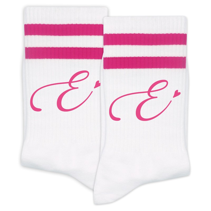 Women’s Socks, White Socks with the Letter ‘E in Hot Pink Color, Birthday Gifts, Back-to-School Season Gifts for Girls, Girlfriend, Classmates, Best Friends, Sisters, Her, Lady, Wife, Mom. (005)