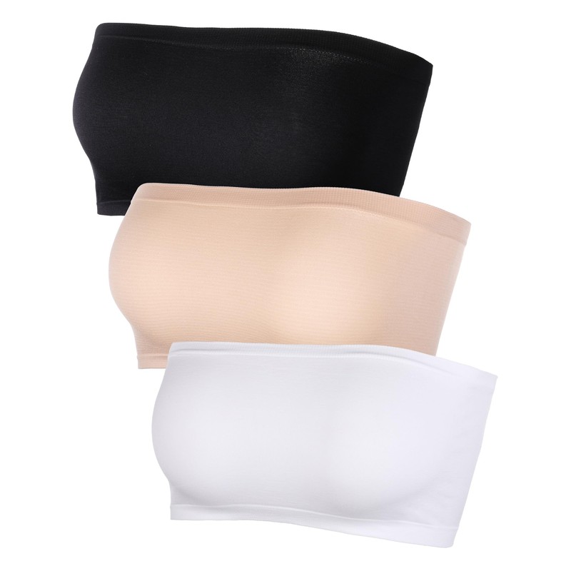 Women's Strapless Bralette, Seamless Bandeau Bra, Stretch, Non-padded Bandeau Top, Bra in Various Colours, Pack of 3, Multicoloured - Schwarz, Weiß, Hautfarbe, Rot und So Weiter Plain, size: m