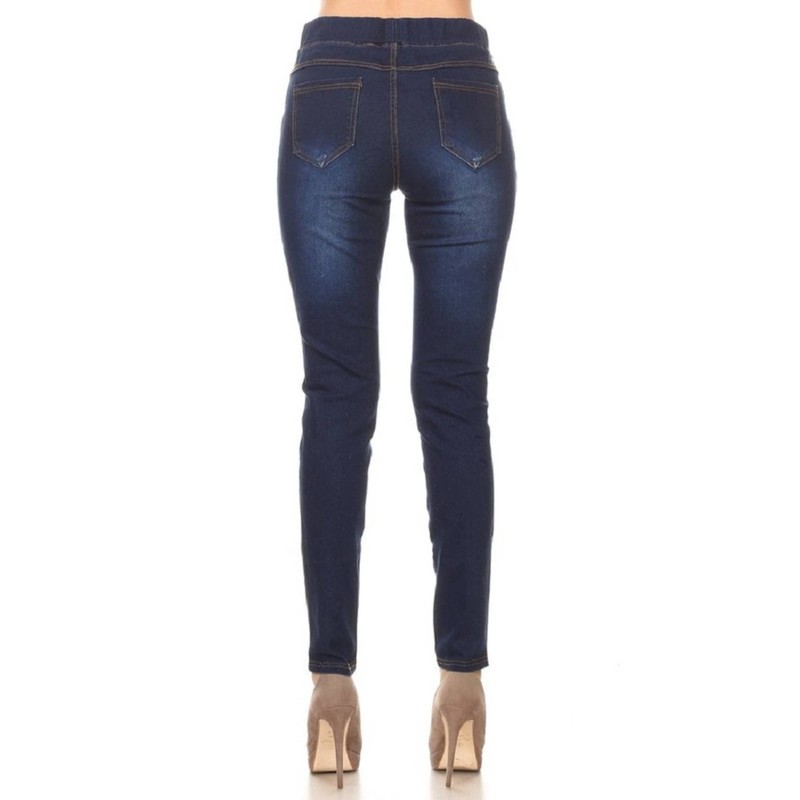 Women's Stretch Pull-On Jeans Skinny Ripped Distressed Denim Jeggings Regular-Plus Size, Dark Denim, Large